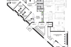 - Begegnungszonen mit Lounge im ersten Obergeschoß und Dachterrasse im 3. Obergeschoß
