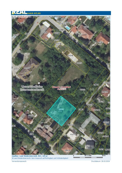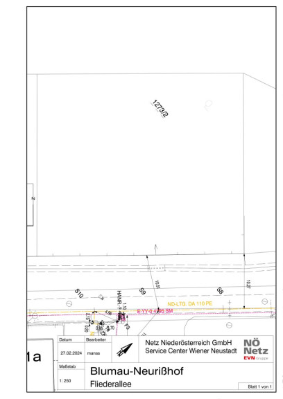 Das Grundstück ist dzt. noch Bestandteil einer größeren Liegenschaft und wird im Zuge der Abwicklung herausgeteilt. Die Zufahrt zum Grundstück ist von der Seite (Fliederallee) geplant.