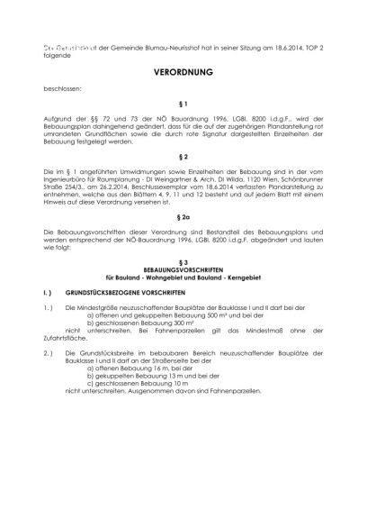 Die Parzelle liegt lt. Auskunft der Gemeinde zur Gänze im Widmungsbereich "Bauland-Wohngebiet" mit folgenden Bebauungsbestimmungen: