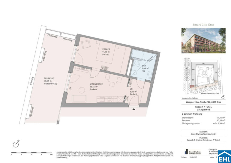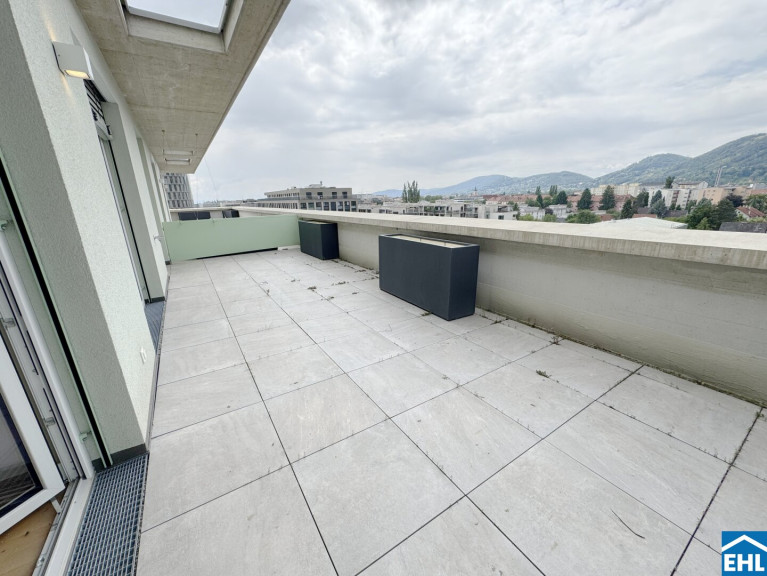 Den zukünftigen Smart Quadrat-Bewohnern stehen zudem eine Vielzahl an Gemeinschaftsräumen, wie z.B. Fitnessräume, Shared Offices, Indoorspielplätze sowie ein Spielplatz im Innenhof, Washing-Lounges, eine Fahrradwerkstatt, Hobby- & Freizeiträume sowie Stellplätze in der hauseigenen Garage zur Verfügung. Ein Nahversorger und eine Bäckerei mit Caféhaus befinden sich ebenfalls direkt im Wohnkomplex. Weitere Geschäfte des täglichen Bedarfs, Ärzte, Schulen und Gastronomielokale sind fußläufig erreichbar. Auch eine große Parkanlage wird derzeit auf dem Nachbargrundstück realisiert. Ein perfekter Mix aus urbanem Leben und privater Erholung!