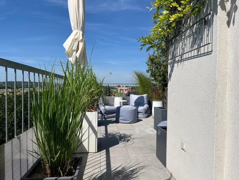 Die 3 Terrassen bieten einen atemberaubenden Ausblick auf die Stadt sowie eine grüne Umgebung, die für eine angenehme und entspannte Atmosphäre sorgt. Genießen Sie die Sonne auf Ihrer Südbalkon oder entspannen Sie sich beim Abendessen auf einer der Terrassen mit Blick auf die funkelnde Skyline.