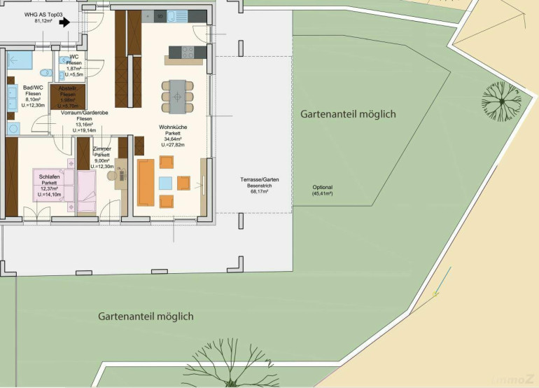 + ca. 68m² Terrasse zzgl. Rundum-Garten