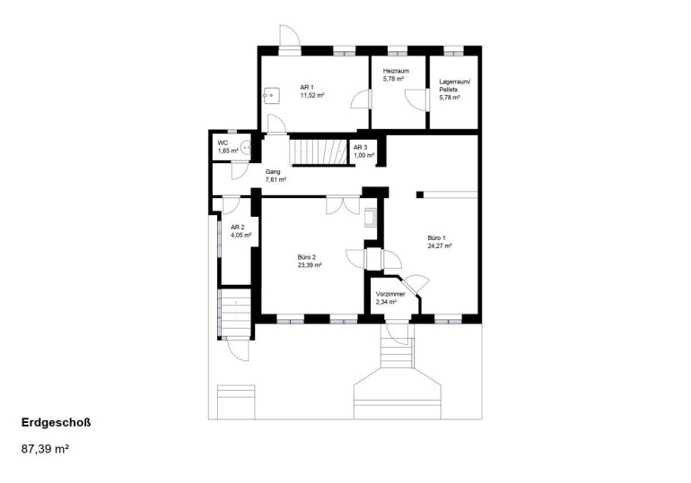 EG: 64,31m2 Wohnfläche zzgl. 23,08m2 Nutzfläche (Lagerfläche und Heizraum)