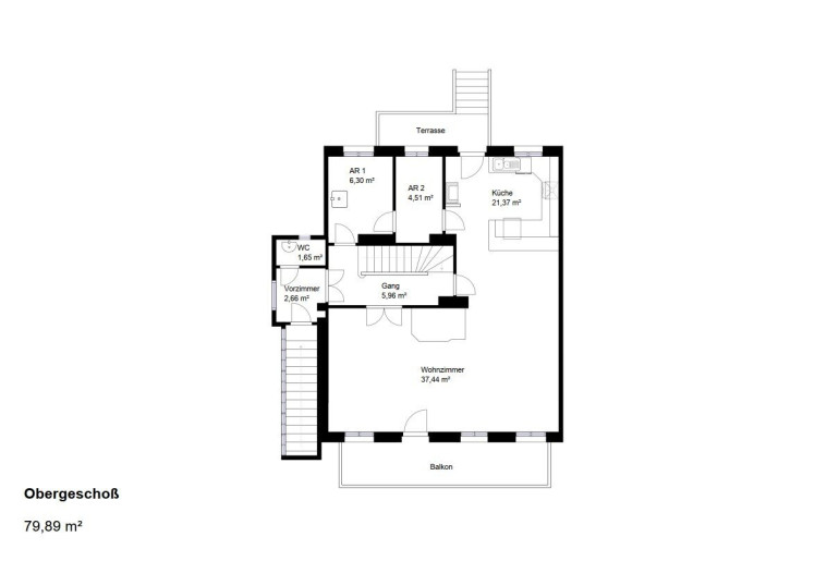 1. OG: 79,89m2 Wohnfläche