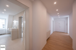 Sie betreten die Wohneinheit über einen offenen Vorraum, welcher Zugang zu allen Räumen bietet. Linker Hand befindet sich eine separate Garderobe, sowie eine Gäste-Toilette. Rechter Hand befindet sich das erste der beiden Schlafzimmer mit einem begehbaren Kleiderschrank, sowie direktem Zugang zum Badezimmer mit Doppelwaschbecken, Dusche und Toilette. Linker Hand des Vorraums befindet sich das zweite Schlafzimmer, welches auch direkten Zugang zum Wohnbereich bietet. Das sehr großzügig dimensionierte Wohn- und Esszimmer mit offener modern ausgestatteter Küche, erreichen Sie stirnseitig vom Eingangsbereich aus gesehen. Der Wohnessbereich besticht vor allem durch die tollen Lichtverhältnisse und den traumhaften Ausblick zum Graben.