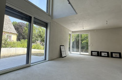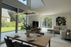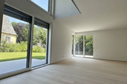 Im Vordergrund steht eine nachhaltige Bauweise mit moderner Architektur in Einklang zu bringen. Große Fensterelemente und Freiflächen beziehen dabei die Natur in den Wohnraum mit ein, und schaffen damit aus jedem Fenster entspannende Ausblicke ins Grüne.