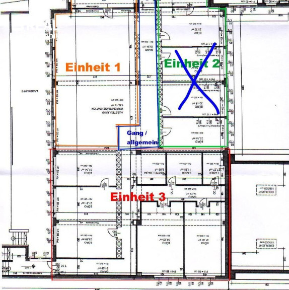 Bitte beachten Sie, dass die weiteren Flächen im Geschoss von anderen Mietern genutzt werden, dh. die WC-Anlagen werden gemeinsam genutzt.