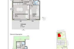 Die ca. 57 m² große Wohnung liegt straßen- und gartenseitig und hat eine nord-süd-westseitige Ausrichtung. Die Terrasse hat eine südseitige Ausrichtung.