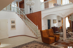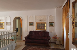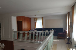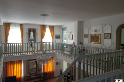 Im Obergeschoss werden sämtliche Wohnwünsche durch einen einem Herrenhaus gerecht werdenden Galeriebereich mit vorgelagertem Terrassenbereich inkl. herrlicher Aussicht in die Region, drei weitere Schlafzimmer sowie eine Bibliothek und ein vom Badezimmer mit Badewanne und Dusche getrenntes WC vervollständigt.