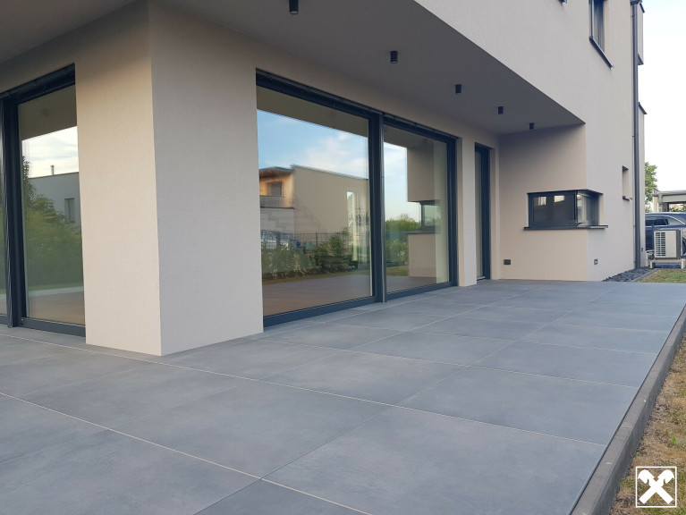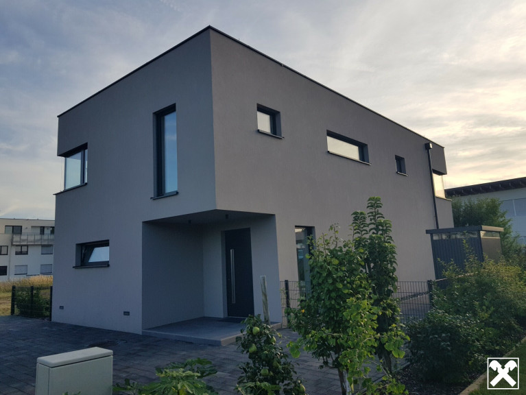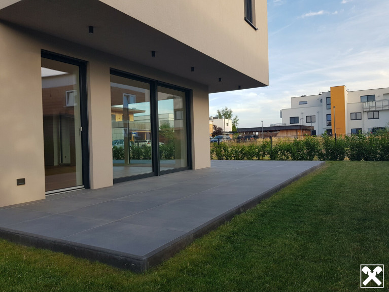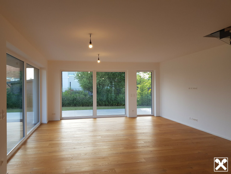Das Wohlfühlhaus begrüßt Sie im Erdgeschoss mit einem offenen Raumkonzept, ein zentraler Vorraum mit Garderobenbereich stellt einerseits die Verbindung mit dem Technikraum, dem Gäste-WC sowie dem imposanten Wohnsalon mit integriertem Küchenbereich über die gesamte Ebene dieses hochwertigen Luxusdomizils dar. Dem Wohnbereich vorgelagert liegt der frisch begrünte Garten sowie ein gut 70m2 großer Terrassenbereich für herrliche Sonnenstunden und Grillabende mit Ihren Freunden und Ihrer Familie.