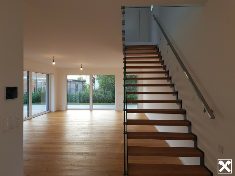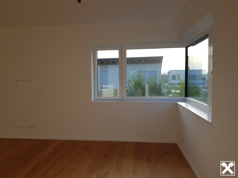 Ganz besonders sind die hochwertigen Ausstattungsmerkmale hervorzuheben, Zusatzausstattungen wie elektrische Beschattungen der Firma Schlotterer, Echtholzböden, Glaselemente, Eckfenster und vieles mehr runden diesen Wohntraum ab.