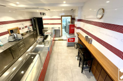 Verkaufsraum, Küche, Kühlraum, Imbissstube, Lagerraum, 2 Toiletten.