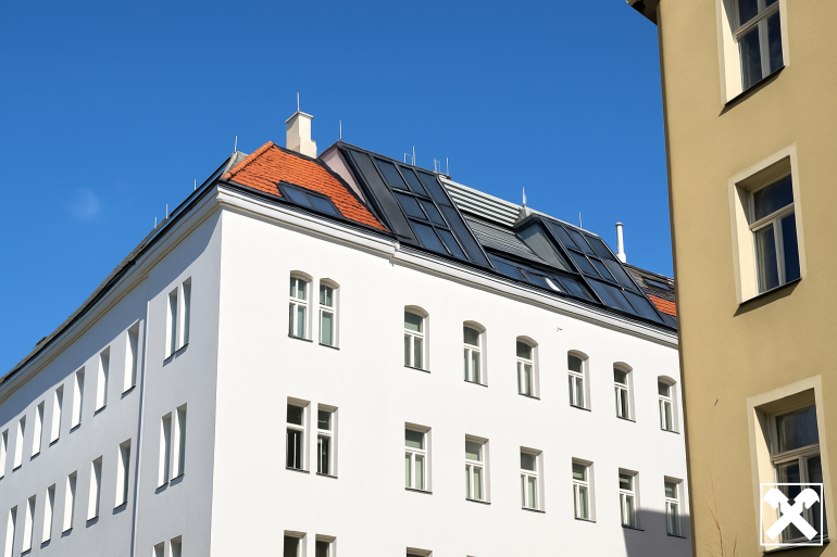 Die Wohnung wurde im Rahmen eines Dachgeschossausbaus mit 8 Wohnungen in einem ca. 1893 errichten Gründerzeithauses in modernstem Wohnstandard errichtet.