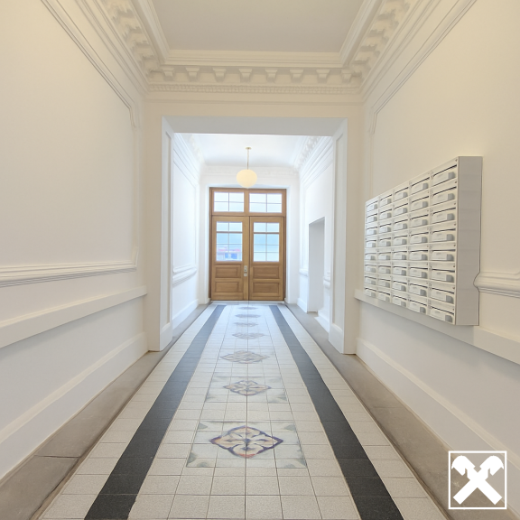 Das Gebäude ist in besten Bauzustand, die allgemeinen Teile des Hauses wurden im Zuge des Ausbaus stilgerecht saniert und ein Lift über alle Ebenen eingebaut.