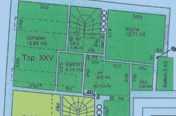 - im unteren Geschoß (4. OG) befindet sich ein ca. 9m² geräumiger Vorraum, das Badezimmer (mit WC), die ca. 13m²(!!!) große Küche und ein ca. 17m²(!!!) großes Schlafzimmer, sowie ein kleiner Wirtschaftsbalkon in den Innenhof mit Grünblick