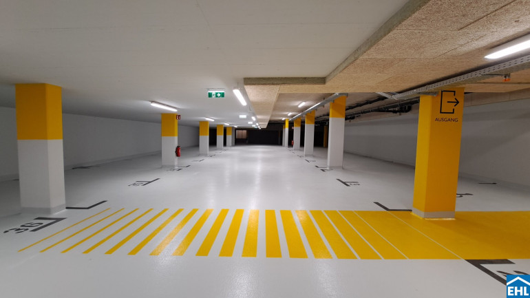 Ein KFZ-Stellplatz in der hauseigenen Tiefgarage ist zu jeder Wohnung dazu zu kaufen.
