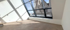 Das Penthouse selbst besticht durch Großzügigkeit, Lichtfülle und stilvolle Eleganz. Auf der unteren Ebene bildet das weitläufige Wohnzimmer mit seinen raumhohen Fensterfronten das Herzstück der Wohnung. Der Blick auf die Canisiuskirche schafft ein unvergleichliches Ambiente, während ein Kamin für behagliche Stunden sorgt. Ebenfalls auf dieser Ebene befinden sich zwei Schlafzimmer, ein luxuriöses Badezimmer mit freistehender Wanne, großzügiger Walk-in Dusche und Doppelwaschbecken, ein separates WC, ein praktischer Abstellraum sowie ein Balkon.