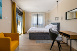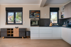 Der kleine Ort Krnica liegt herrlich ruhig südöstlich von Pula in Istrien. Der beschauliche Ort befindet sich etwas abseits von belebten Touristenzentren und ist besonders für Personen, die es gern wenig turbulent lieben. Krnica liegt zwar nicht direkt an der Küste, doch gelangt man mit dem Auto rasch an die etwa drei Kilometer entfernte Bucht Vinjole, um an den weitläufigen Stränden nach Herzenslust in der Sonne zu liegen, im herrlich blauen Meer zu baden oder verschiedenste Wassersportarten auszuüben. Krnica ist auch ein idealer Ort für alle, die Istrien nicht nur als Badeparadies erleben möchten. Das malerische Hinterland der istrischen Küste bezaubert mit einer wunderschönen mediterranen Landschaft, die eine erholsame und abwechslungsreiche Zeit in der unberührten Natur garantiert. Die grandiose Landschaft bietet auch ein gutes Terrain für erlebnisreiche Wanderungen fernab von stark befahrenen Touristenstraßen. Krnica bietet diverse Infrastruktur wie Restaurants, Cafés und einem Supermarkt. Für einen ausgedehnten Einkaufsbummel ist es nicht weit zu den größeren Städten der Umgebung.Beschreibung der Immobilie