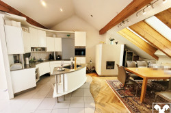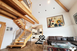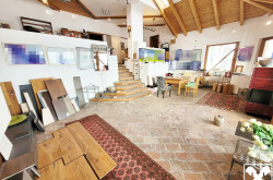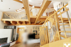 Das Wohngebäude befindet sich im Ober- und Dachgeschoß mit offenem Wohnraum mit möblierter Küche und Esszimmer, Kamin und Kachelofen, Galerie, 3 Schlafräumen, 2 Bädern und großzügiger, überdachter Dachterrasse.
