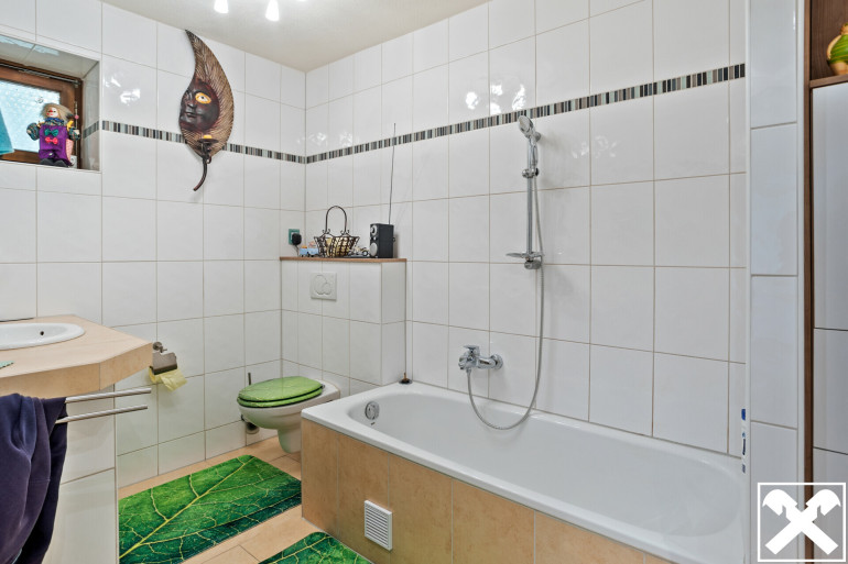 Im Untergeschoss befinden sich zwei Schlafzimmer, davon eines mit Ausgang auf die Terrasse mit Grillkamin und den bestens gepflegten Garten. Dieser ist terrassenförmig angelegt. Ein solides Gartenhaus mit Veranda, ein schöner Biotopteich sowie ein Holz-Hühnerhaus werten die Anlage nochmals auf. Beheizt wird das Haus mittels einer ÖL-Zentralheizung mit neuester Brennwerttechnik der Firma Viessmann. Außerdem wurde 2021 eine Photovoltaikanlage mit Stromeinspeisung installiert. Das Dach wurde 2005 als Kaltdach mit Alpendachsteinen erneuert. Der Dachboden ist gedämmt. An das Haus ist eine solide Garage und ein Carport, jeweils mit Automatiktor, angebaut. Die Liegenschaft ist zum größten Teil eingefriedet.