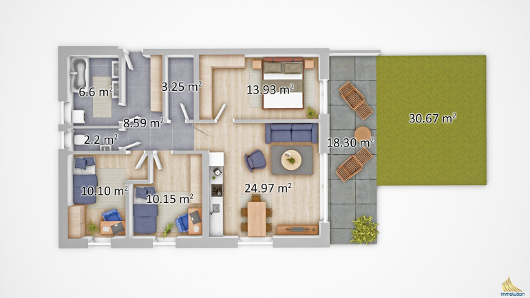 Private Terrasse und Garten: Verlängern Sie Ihr Wohnzimmer in die Natur hinaus mit der 18 m² großen, überdachten Terrasse, die in den eigenen, 31 m² umfassenden Garten übergeht. Diese private Oase bietet nicht nur Raum für Entspannung, sondern auch für gesellige Stunden im Freien.
