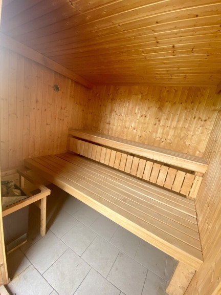 Fliesen, Laminatboden, Gas, Zentralheizung, Einbauküche, Garage, Sauna