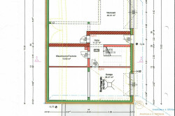 Das neue Einfamilienhaus verfügt im Erdgeschoss über eine Wohnfläche von ca. 87 m². Diese unterteilt sich in einen Vorraum, einen ca. 25 m² großen Wohn-/Essbereich