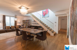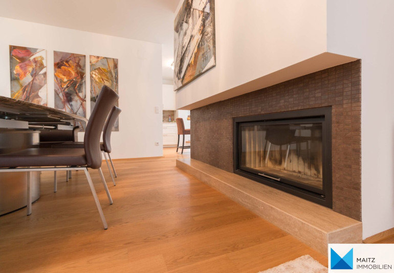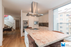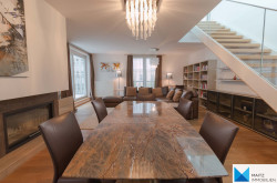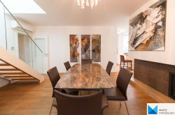 The kitchen is excellently equipped (appliances from GAGGENAU, MIELE, SIEMENS, AEG; kitchen island, marble countertop; built-in coffee machine, induction stove, generous glazing and direct access to the terrace etc.)