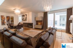 The apartment includes a terrace on the living level and an XXL roof terrace, both for exclusive use.