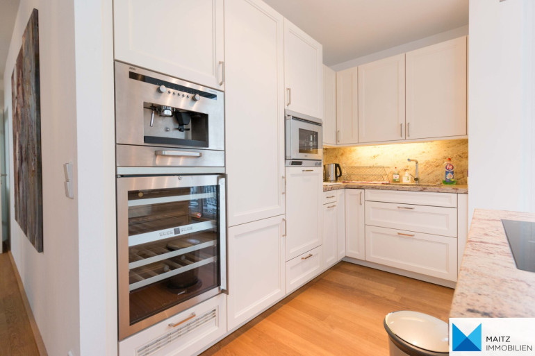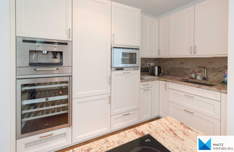 + top ausgestattete SieMatic-Küche (GAGGENAU/SIEMENS/AEG-Geräte, Kücheninsel, Marmor-Steinplatte, integrierter Weinkühlschrank, Dampfgarer etc.)