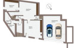 - Doppelgarage mit Fußbodenheizung (auch im Keller)