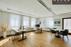 - 1.OG - ca. 234,77 m² (7 zentral begehbare Räume, Sanitäreinheiten, Wintergarten, Terrasse, eingerichtete Teeküche, Archiv, Serverraum gekühlt, 2 getrennte Sanitäreinheiten) - ab Jänner 2027 verfügbar