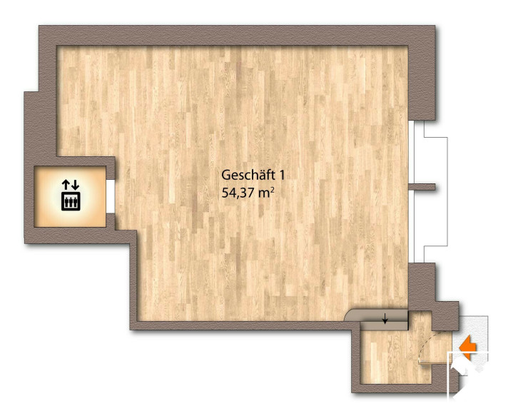 Im ca. 54 m² großen Verkaufsraum präsentieren Sie Ihre Produkte bestens, mit dem Lift erreichen Sie den Lagerraum im Keller mit ca. 38 m².