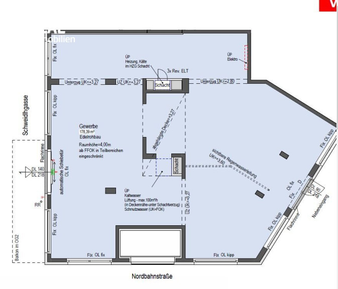 - Miete: EUR 17/m2 zzgl. BK = 3.514,29 zzgl. Ust.