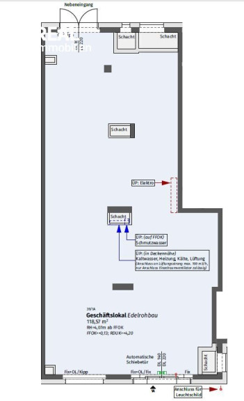 - Sanierung: der Vermieter übernimmt folgende Arbeiten. Bodenaufbau/Estrich, Heizung/Kühlung, Strom, 1 bis 2 WC Einheiten. Der Rest, z.B. Keramik, Armaturen und Bodenbeläge müssen vom Mieter kommen.