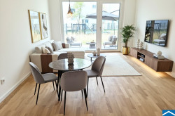 Die Wohnungen bestechen durch durchdachte Grundrisse, großzügige Fensterfronten und moderne Ausstattung. Ob eine gemütliche Garçonnière mit ca. 32m² oder eine weitläufige 5-Zimmer-Wohnung mit bis zu ca. 119m² – jede Einheit bietet Ihnen ein Zuhause zum Wohlfühlen. Die nach Süden oder Südosten ausgerichteten Wohneinheiten verfügen über großzügige Balkone und Terrassen, die Erdgeschoßwohnungen bieten zudem private Gärten. Genießen Sie den Luxus, auf Pergolen Weinreben ranken zu lassen und die Natur hautnah zu erleben.