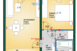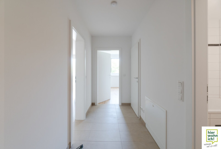 Die Wohnung selbst ist sehr gut aufgeteilt, die 54,94 m² sind optimal nutzbar. Die Wohnküche ist bereits mit einer Küche ausgestattet und hat einen Balkon mit etwa 8,8 m². Zusätzlich hat die Wohnung ein Kellerabteil mit etwa 4,23 m².