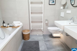 Fliesen, Parkett, Fußbodenheizung, Personenaufzug, Nordbalkon, Bad mit Fenster, Badewanne, Dusche