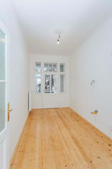 Fischgrät-Parkettböden, Kassettentüren, Wienerstockfenster, in der Küche Dielenboden. All diese Details und natürlich eine beeindruckende Raumhöhe von 3 Meter 30 unterstreichen den geschichtlichen Charakter dieser Wohnung.