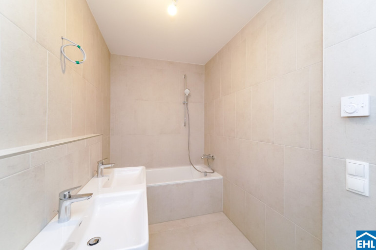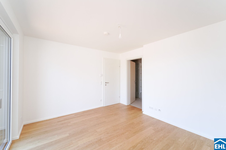 Die Liegenschaft vereint nicht nur architektonische Eleganz, sondern setzt auch in puncto Ausstattung auf höchste Standards. Große Fenster mit Dreifachverglasung lassen viel Licht in die Wohnungen und sorgen für eine angenehme Wohnatmosphäre. Raffstores bieten flexiblen Sonnenschutz und Privatsphäre. In den Wohnräumen sorgen edle Parkettböden für eine warme, wohnliche Atmosphäre, während die Bäder mit großformatigen Feinsteinzeugfliesen modern und stilvoll gestaltet sind.