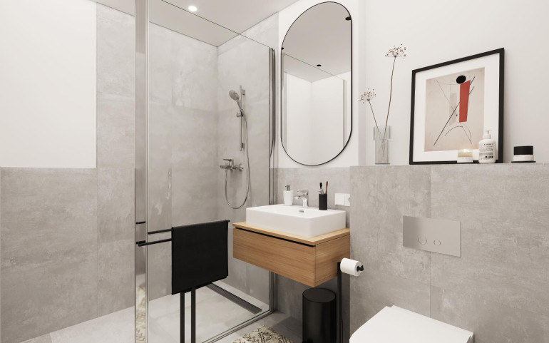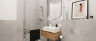 - zeitloses Feinsteinzeug und schöne Parkettböden