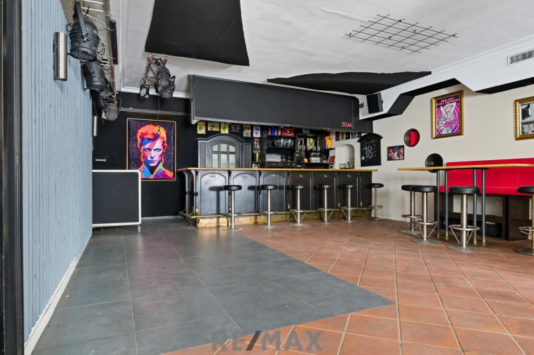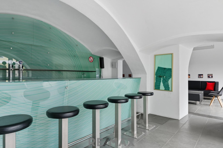 Das Erdgeschoss beherbergt drei stilvoll sanierte Bars sowie eine voll ausgestattete Gastroküche, die im Jahr 2023 umfassend renoviert wurden. Über eine Treppe gelangt man in das 1. Obergeschoss, wo sich der Zugang zu einem repräsentativen Veranstaltungssaal mit Bühne befindet. Der Saal bietet Platz für bis zu 500 Personen und verfügt über einen separaten Backstagebereich, der professionelle Veranstaltungsabläufe ermöglicht.