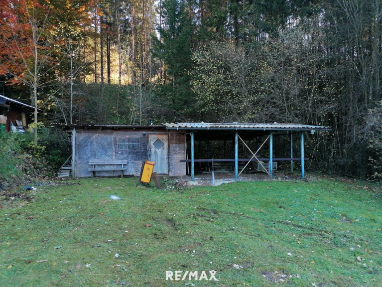 Aktuell ist das Grundstück mit einer Gartenhütte, einem Geräteschuppen und einem Grillplatz bebaut. Strom und Wasser sind bereits erschlossen, der Kanal ist in der Zufahrtsstraße vorhanden.