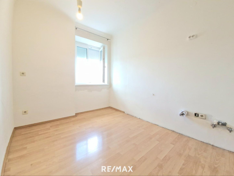 Die kleine und feine Wohnung besteht aus einem Schlafzimmer, einer Wohnküche, einem Vorraum, einer Toilette sowie einem Badezimmer mit Waschmaschinenanschluss und einer Badewanne. Die Fenster und Außenrollos im Wohn- und Schlafzimmer sind komplett neu. Dadurch ist die Wohnung sehr leise und abgedunkelt, sofern man das wünscht. Küchenanschlüsse sind bereits vorhanden und so steht einer modernen Wohnküche nichts im Wege. Da das Heizsystem zu erneuern ist, empfehlen wir Infrarotpaneele in den Wohnräumen. Die Wohnung ist leicht sanierungsbedürftig, aber nach den Modernisierungen (Heizung, Küche) besitzt man danach eine geräumige 2-Zimmer-Wohnung in einer Lage mit guter Infrastruktur.