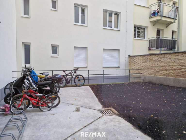 Das 1960 gebaute Haus wurde gerade thermisch saniert. Ein neues Dach, neue Fassadendämmung, neue Fenster mit Außenrollläden und Renovierungen im Stiegenhaus gehören zum Sanierungspaket, das bis Ende 2025 fertiggestellt ist. Aufgrund des Sanierungsdarlehens sind die Betriebskosten bis 2040 um € 148,88 erhöht. Insgesamt betragen die BK somit 349,06 brutto. Die Elektrik im Haus wurde bereits davor erneuert. Im Innenhof gibt es die Möglichkeit Fahrräder abzustellen.