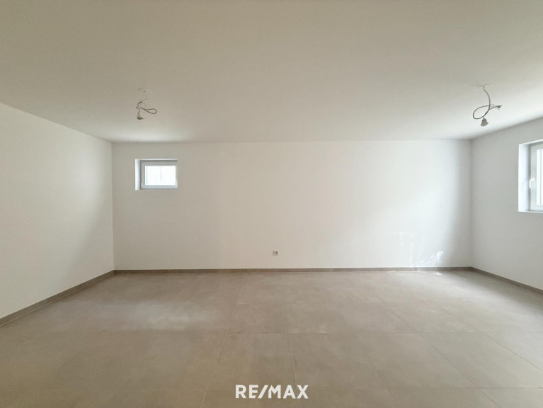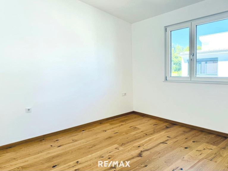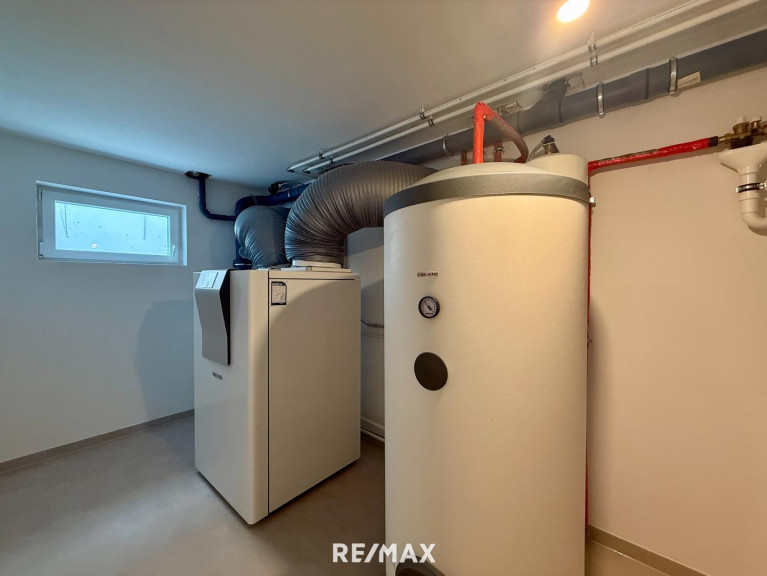 Für reichlich Tageslicht sorgen die elektrisch bedienbare Lichtkuppel im Vorraum sowie die bodentiefen Fenster auf der Südwestseite im Erdgeschoß. Dank des Pultdaches beträgt die Raumhöhe im Obergeschoß bis zu 3,45 Meter und lässt die Räume noch großzügiger wirken. Das ganze Haus wird mittels einer Fußbodenheizung temperiert was im Zusammenhang mit den hochwertigen Echtholzdielenböden für ein besonders behagliches Wohnklima sorgt. Auch das Untergeschoß verfügt über eine Fußbodenheizung und ist somit beispielsweise als Fitnessraum, Home-Office oder als erweiterter Wohnraum geeignet. Die Heizung wird von einer ökologisch nachhaltigen Luft-Wasser-Wärmepumpe inklusive Kühlfunktion gespeist. Eine Klimaanlage und Außenrollläden gehören ebenso zur Grundausstattung. Somit bleibt Ihr Haus auch in den heißen Sommertagen angenehm temperiert.