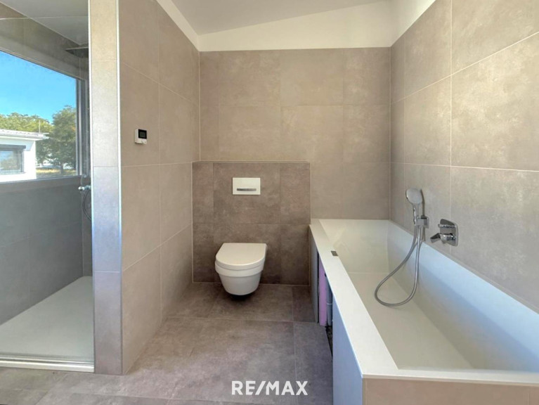 Diese exklusive Doppelhaushälfte wird schlüsselfertig angeboten und ist in Kürze bezugsbereit. Das Haus bietet eine Wohnnutzfläche von ca. 107 m², verteilt auf zwei Etagen. Weitere ca. 54 m² Nutzfläche stehen im Untergeschoß zur Verfügung. Ein besonderes Highlight ist der südwestseitige Garten mit einer ca. 20 m² großen Terrasse. Das Herz des Hauses bildet der sehr großzügige Wohn-, Ess- und Küchenbereich auf dem Erdgeschoß. Von hier haben Sie direkten Zugang zur Terrasse und zu dem Garten. Über eine Vollholzstiege gelangt man in das Obergeschoß, wo sich drei Zimmer sowie ein exklusiv ausgestattetes Badezimmer mit Dusche und Badewanne befinden.
