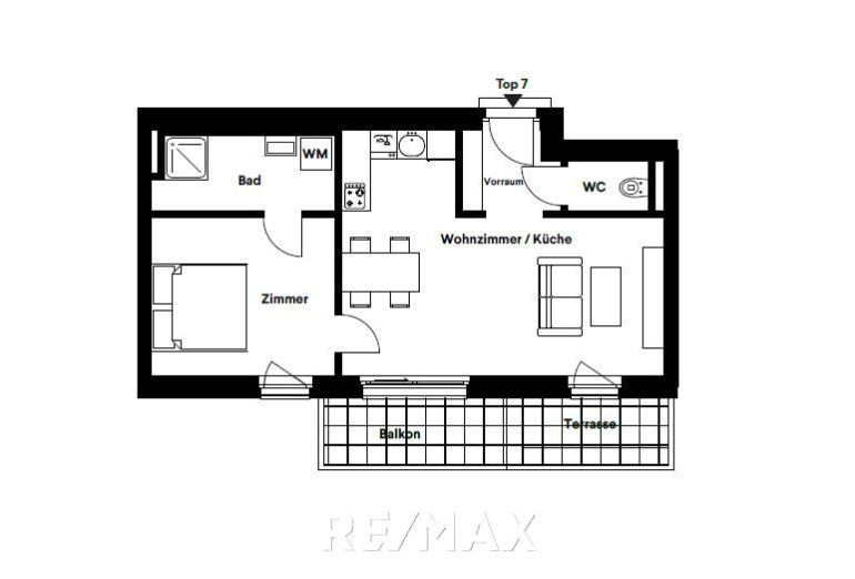 Diese einzigartige Dachgeschosswohnung bietet luxuriöses Wohnen mit einer großzügigen Dachterrasse. Die Ausrichtung nach Süden garantiert, dass die Wohnung den ganzen Tag über von reichlich Sonnenlicht durchflutet wird. Die Wohnung beeindruckt mit einem durchdachten Grundriss, der einen Eingangsbereich, ein großes Wohnzimmer mit offener Küche, zwei Schlafzimmer, einen begehbaren Kleiderschrank, ein Badezimmer und eine separate Toilette umfasst. Die bodentiefen Fenster in Richtung Südwesten lassen nicht nur viel Tageslicht herein, sondern bieten auch einen herrlichen Blick auf den hauseigenen Garten.