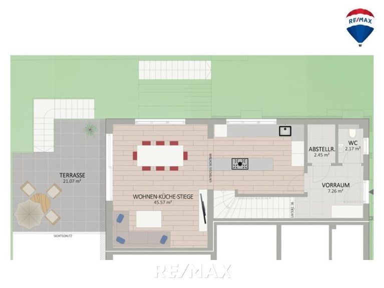 Diese zum Verkauf stehende Doppelhaushälfte ist von der Alten Donau nur ca. 500 Meter entfernt – somit haben Sie eine der beliebtesten Naherholungsgebiete der Wiener fast vor Ihrer Haustür! Die Alte Donau bietet Ihnen ein wahres Urlaubsflair und sorgt für Entspannung und Wohlbefinden. Die Möglichkeiten zur Freizeitgestaltung sind hier schlichtweg beinah unerschöpflich. Baden, Wassersport oder andere sportliche Aktivitäten – all das finden Sie in direkter Umgebung. In Restaurants unmittelbar am Wasser können Sie sich an lauen Sommerabenden kulinarisch verwöhnen lassen. Jedoch darf auch auf die gute Infrastruktur hingewiesen werden: Mit der Autobuslinie 93A ist man in wenigen Minuten an der U-Bahnstation Kagran. Mit dem Auto ist man in Kürze auf der Donauufer-Autobahn A22 sowie auf der Südosttangente. Und auch für die Versorgung mit Waren des täglichen Bedarfs müssen Sie keine weiten Wege auf sich nehmen – in ca. 1 km Radius finden Sie Filialen mehrerer Supermarktketten sowie diverse andere Geschäfte. Für ein ausgiebiges Shopping bietet sich darüber hinaus das ca. 1,5 km entfernte Donau Zentrum an.