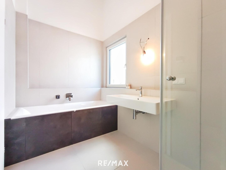 Diese exklusive Doppelhaushälfte wird schlüsselfertig angeboten. Das Haus ist vollunterkellert und bietet eine Wohnnutzfläche von ca. 149 m², verteilt auf drei Etagen. Weitere ca. 15,7 m² Nutzfläche stehe Ihnen im Untergeschoß zur Verfügung. Ein besonderes Highlight ist der westseitige Garten mit 2 großen Terrassen. Das Herz des Hauses bildet der großzügige Wohn-, Ess- und Küchenbereich auf dem Erdgeschoß. Von hier haben Sie direkten Zugang zur einer der Terrassen. Über eine Vollholzstiege gelangt man in das Obergeschoß, wo sich drei Zimmer sowie ein exklusiv ausgestattetes Badezimmer mit Dusche und Badewanne befinden. Im Untergeschoß steht Ihnen ein geräumiges Zimmer mit Zugang zu der unteren Terrasse und zum Garten zur Verfügung. Darüber hinaus gibt es im Untergeschoss ein weiteres Badezimmer mit Dusche und WC.